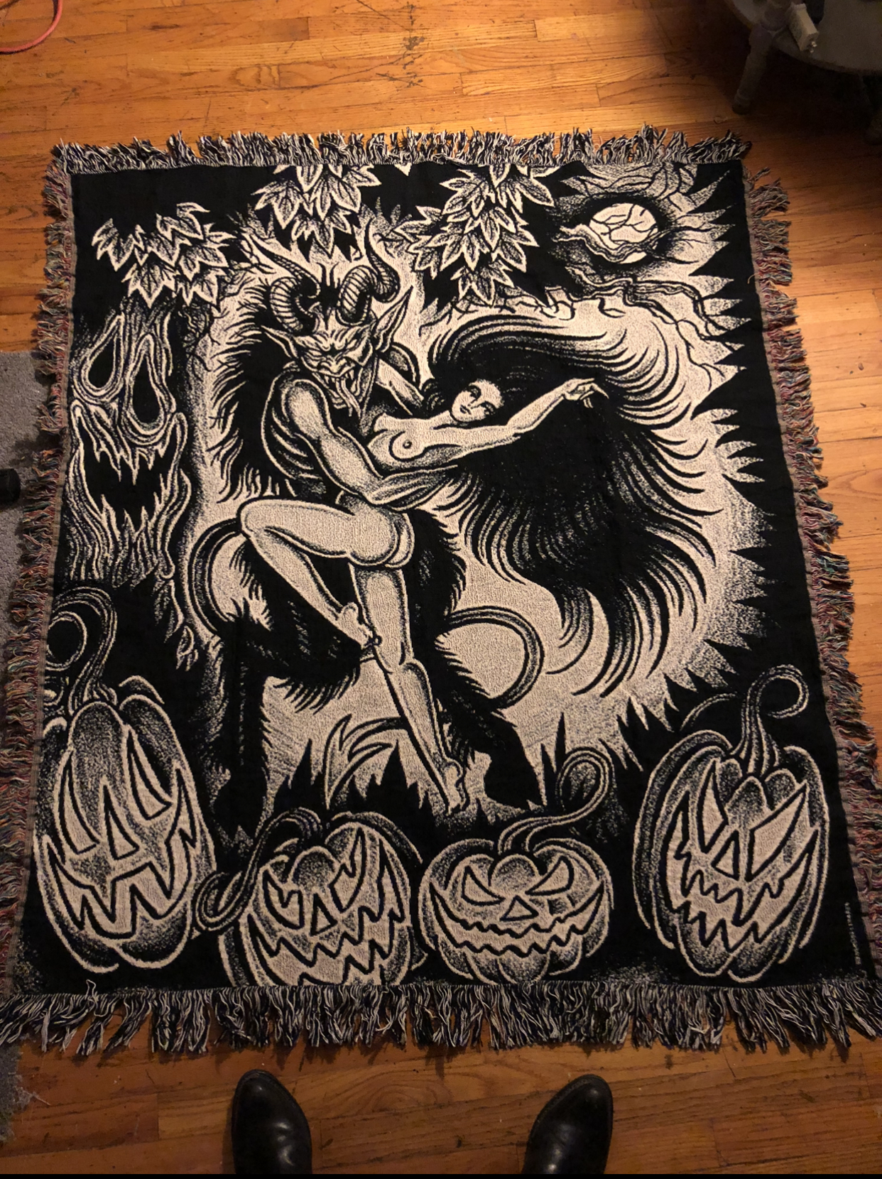 100% cotton blanket with tasseled edges. 50”x60” throw blanket with design! Order BEFORE 12/10 to receive package before 12/25. Please allow at least two weeks for shipping and production